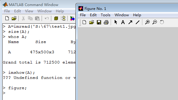 首先使用imread函数读入一个图像,读入成功;赋值给A,A成为一个矩阵;